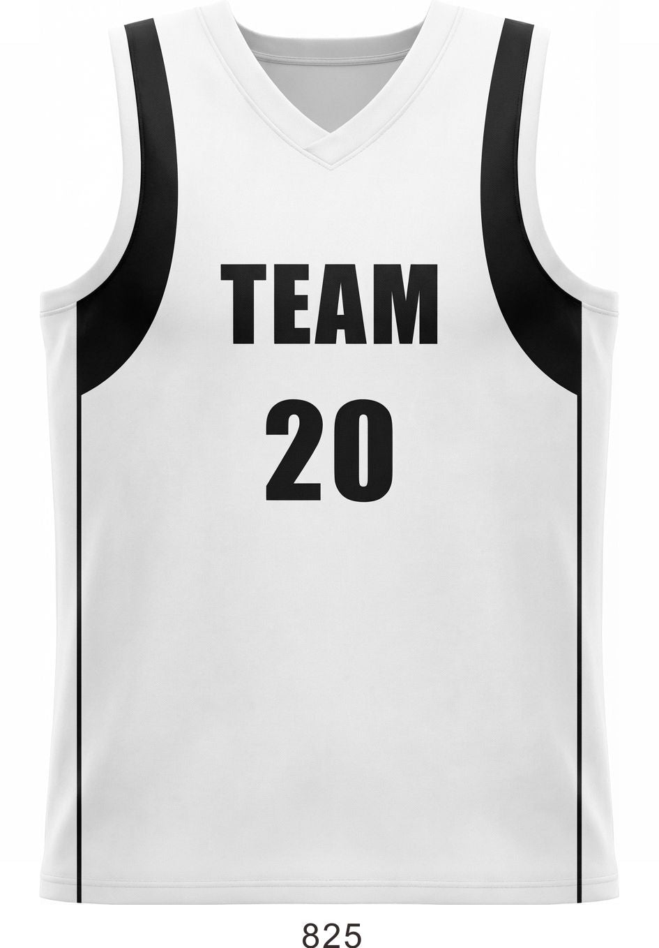 Style 825 black/white Basketball Uniforms